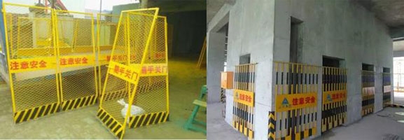 特點(diǎn):裝拆簡(jiǎn)單、開關(guān)靈活,電梯井防護(hù)門井架防護(hù)門裝有連鎖裝置,任一樓層防護(hù)門開啟后,井架自動(dòng)停止運(yùn)行,防護(hù)門外形美觀漂亮,安全可靠,能多次重復(fù)使用。
